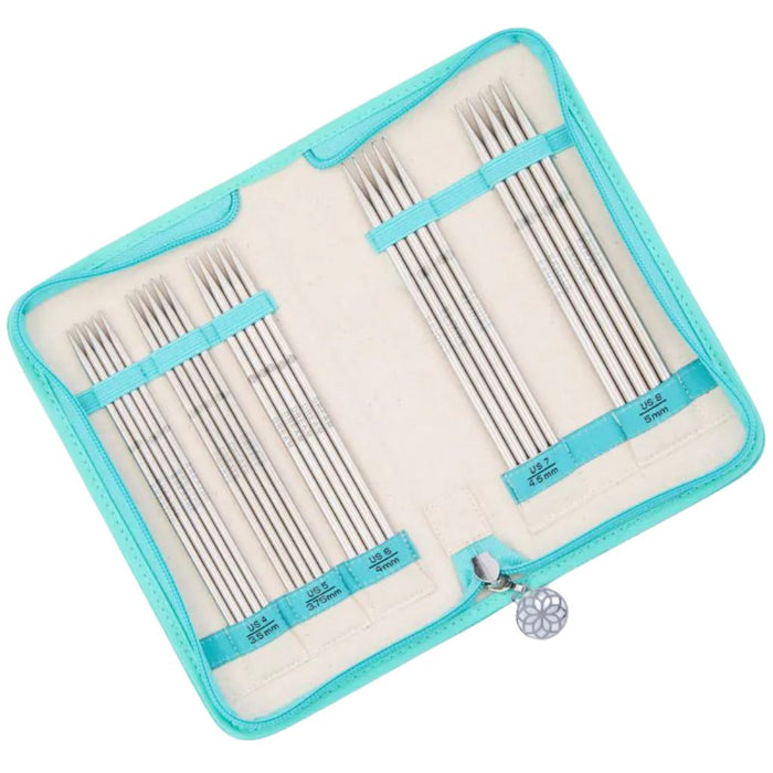 Diseñados para proyectos circulares como calcetines, gorros y más, este conjunto incluye prácticos accesorios: un medidor de palillos, dos agujas para reparaciones perfectas y una variedad de marcadores de puntada (bloqueo, divididos y redondos) para mantener tu proyecto organizado en todo momento.