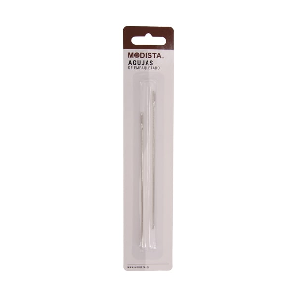 Agujas para tejer o empaquetar. Ideales para materiales gruesos como yute, lana y lino. Estas agujas especiales se usan para coser sacos, esteras u otros materiales gruesos y firmes. Tienen un ojo grande que permite enhebrar con facilidad. El Set Incluye 2 agujas.