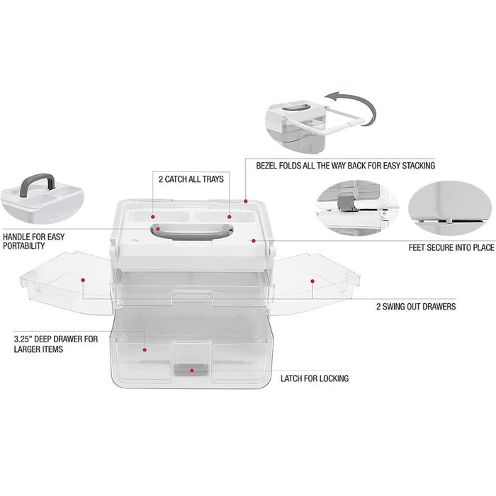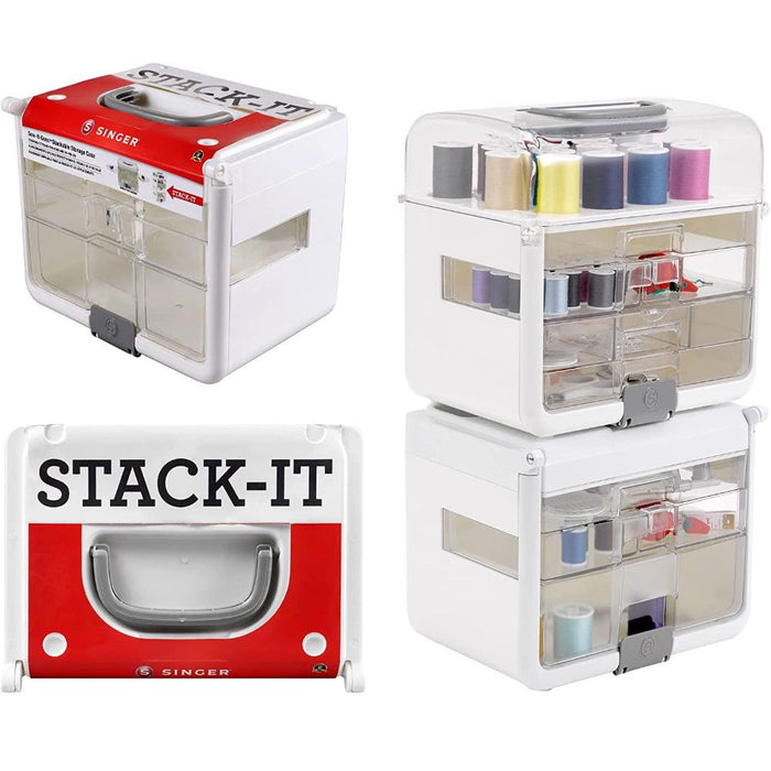 Descubre la versatilidad de la caja organizadora portátil Singer, diseñada para satisfacer tus necesidades de almacenamiento de manera práctica y elegante. Esta caja es perfecta para organizar accesorios de costura, herramientas de manualidades, suministros de arte, joyas, maquillajes y mucho más.