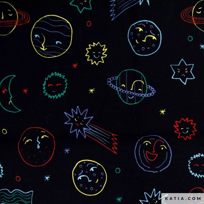 Cortes de tela con hermosos estampados variados en tela de popelín y denim de Katia Fabrics, cada uno con dimensiones de 50 cm por 145 cm. La tela de popelín y denim son conocidas por su resistencia y facilidad de manejo, lo que la convierte en una elección perfecta para diversas aplicaciones de costura. Las telas seleccionadas son perfectas para pequeños y llamativos proyectos o combinando los estampados puedes crear prendas o accesorios.