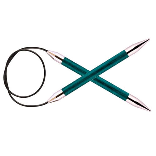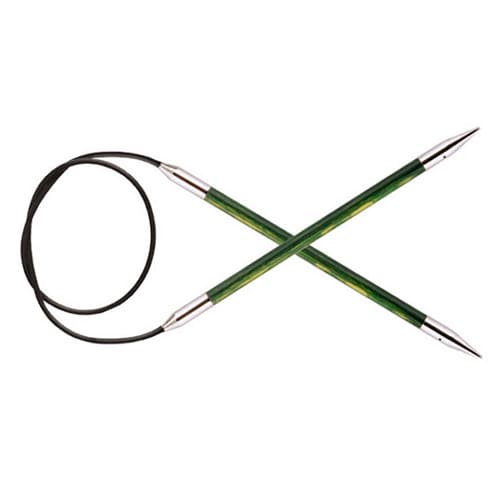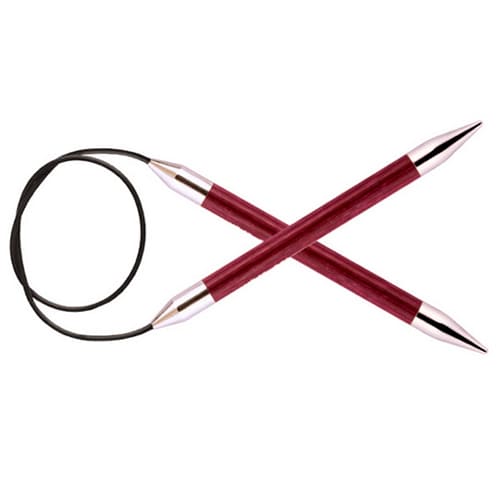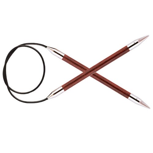 Palillo Circular Fijo de 80cm Royale de Knitpro: Elegancia y comodidad en un solo palillo. La experiencia de tejer tu proyecto usando estos palillos, que giran en 360º en la unión con el cable, hechos de exquisita madera Symfonie de diferentes colores y con puntas de bronce perfectamente lisas te dejará en las nubes.