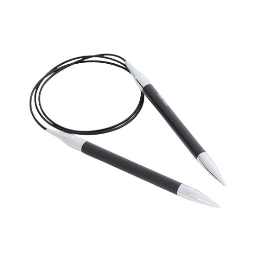 Palillo Circular fijo Karbonz de 80 cm, fabricados de fibra de carbono con puntas de bronce. Livianos, suaves, duraderos y flexibles. Su superficie lisa ayuda a que el hilado se deslice suavemente y sin enganches. Cálido al tacto y suave en la mano, ademas tiene una conexión al cable suave y segura.