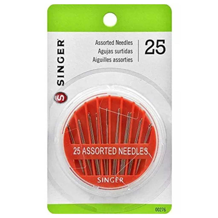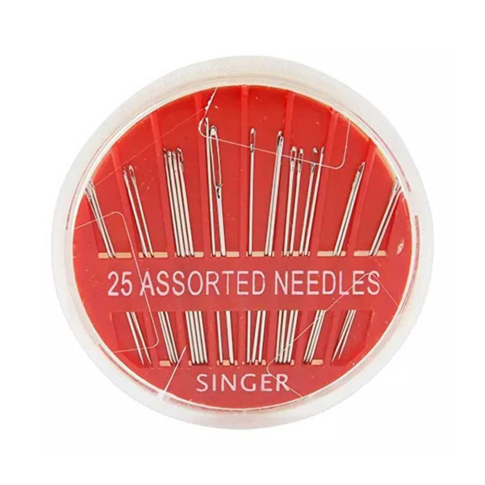 Set de 25 agujas de mano surtidas. Incluye agujas para coser, bordar, medianas y largas. Vienen contenidas en una practica rueda de plástico.